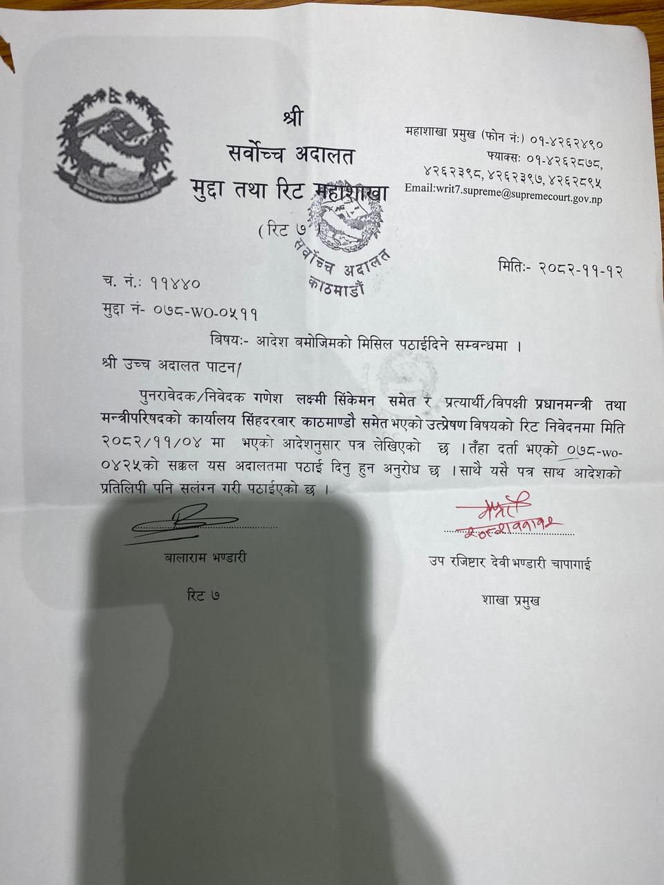 Congratulatory Letter: Durga Lakshmi Shrestha as Health Secretary